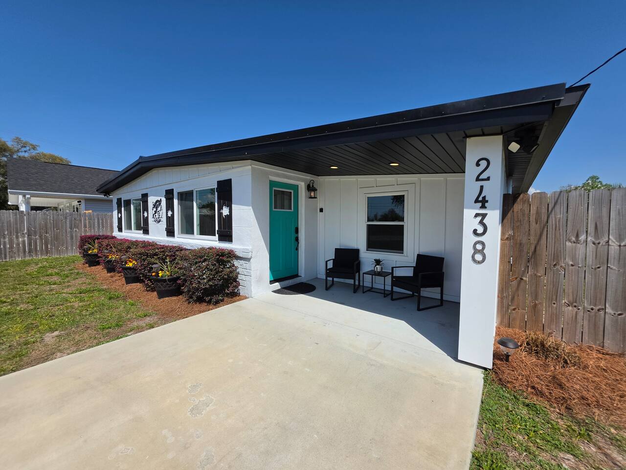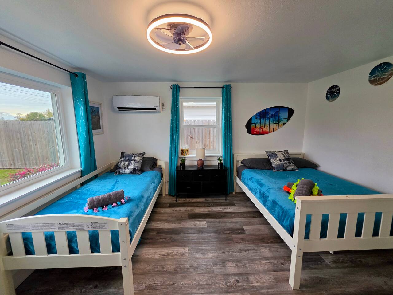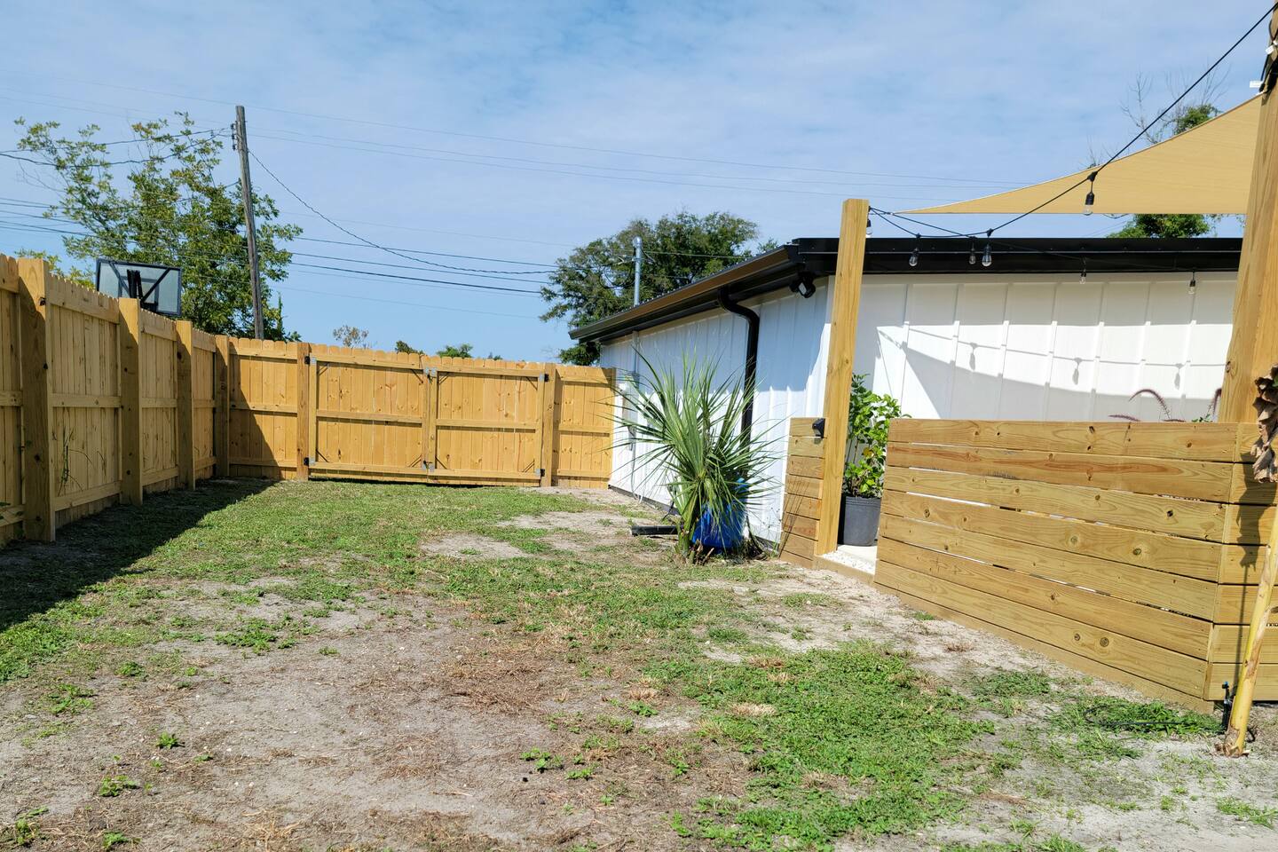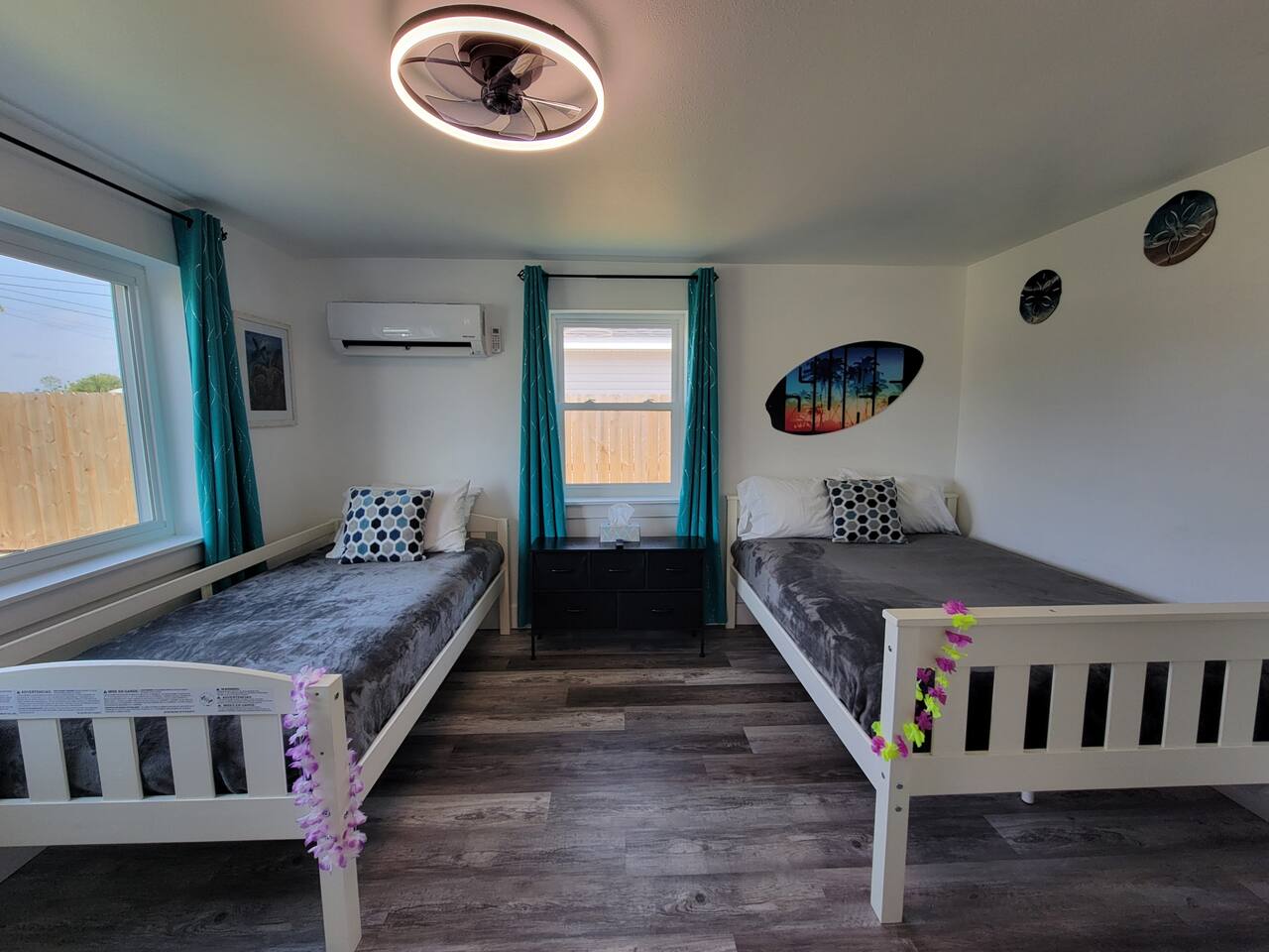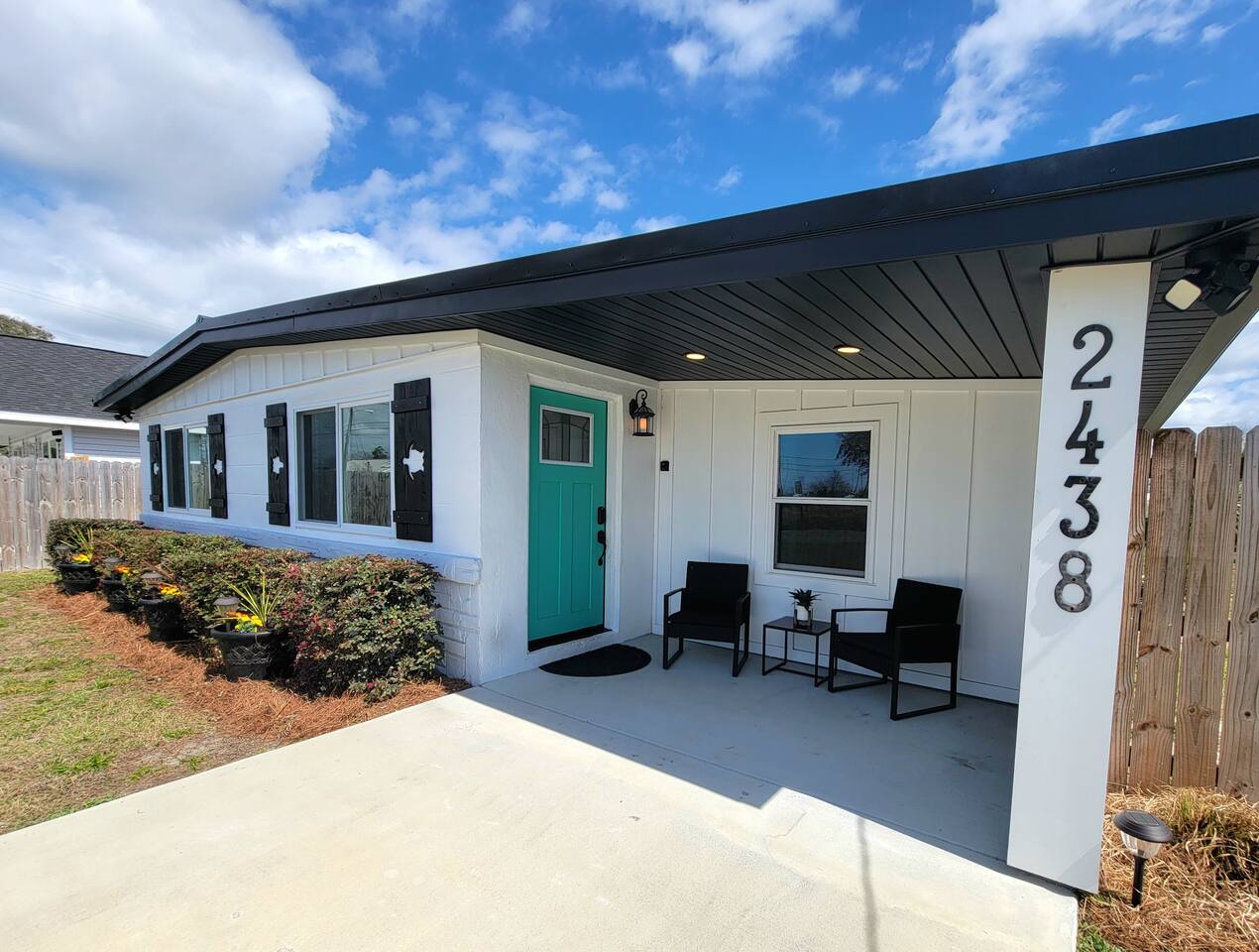 🐢 Turtle Cove Beach Retreat – ⭐ Modern Coastal Cottage in Panama City! 🏡 As You Arrive • Eye-catching modern beach cottage with black, grey, and teal accents • Hand-crafted sea turtle shutters add a local, artistic flair • Lush landscaping with flowers and shrubs creates a welcoming vibe • Ample driveway parking for you and your guests 🛋️ Living Room Open-concept layout flowing into the kitchen • 65" Smart TV and cozy gray sectional with queen memory foam pull-out bed • Large window for natural light and front yard views • Dedicated temperature control for comfort • Decorated with indoor plants and beachy accents 🍽️ Kitchen • Modern with black brushed granite countertops and stainless steel Whirlpool appliances • Unique surfboard light fixture adds coastal character • Chop block floating shelves for storage • Fully stocked for all your cooking needs — from spices to cookware 🛏️ Master Bedroom • Cozy and stylish with a queen memory foam mattress • 50" Smart TV and small work desk • Private temperature control • Decorated with turtle & beach-themed art 🛏️ Guest Bedroom • Two beds, one full and one Twin bed Both have very comfy mattresses • 50" Smart TV with HBO Max included • Private temperature control • Serene turtle and beach decor 🛁 Bathroom • Spacious with a double vanity and modern rain shower & soaking tub • Sleek black fixtures and touch-screen lighted mirror • Recessed lighting and turtle-themed details for a spa-like feel 🧺 Laundry Room & Game Space • Equipped with Samsung front-load washer & dryer • Bonus: Retro arcade machine with 300+ classic games for 1–2 players 🍴 Outdoor Dining Area • Shaded by a sun sail, surrounded by natural greenery and stone • Handmade picnic table under string lights • Propane grill for unforgettable meals 🔥 Outdoor Fireplace • Stone path leads to a cozy firepit with bench seating • Surrounded by privacy fencing for a secluded oasis 🐚 Modern Touches & Local Charm • Thoughtfully designed with modern beach cottage style • Sea turtle theme runs throughout for a fun, local vibe • The perfect escape for relaxation, connection, and memories 📅 Ready to book? Come relax, reset, and enjoy a one-of-a-kind stay at Turtle Cove