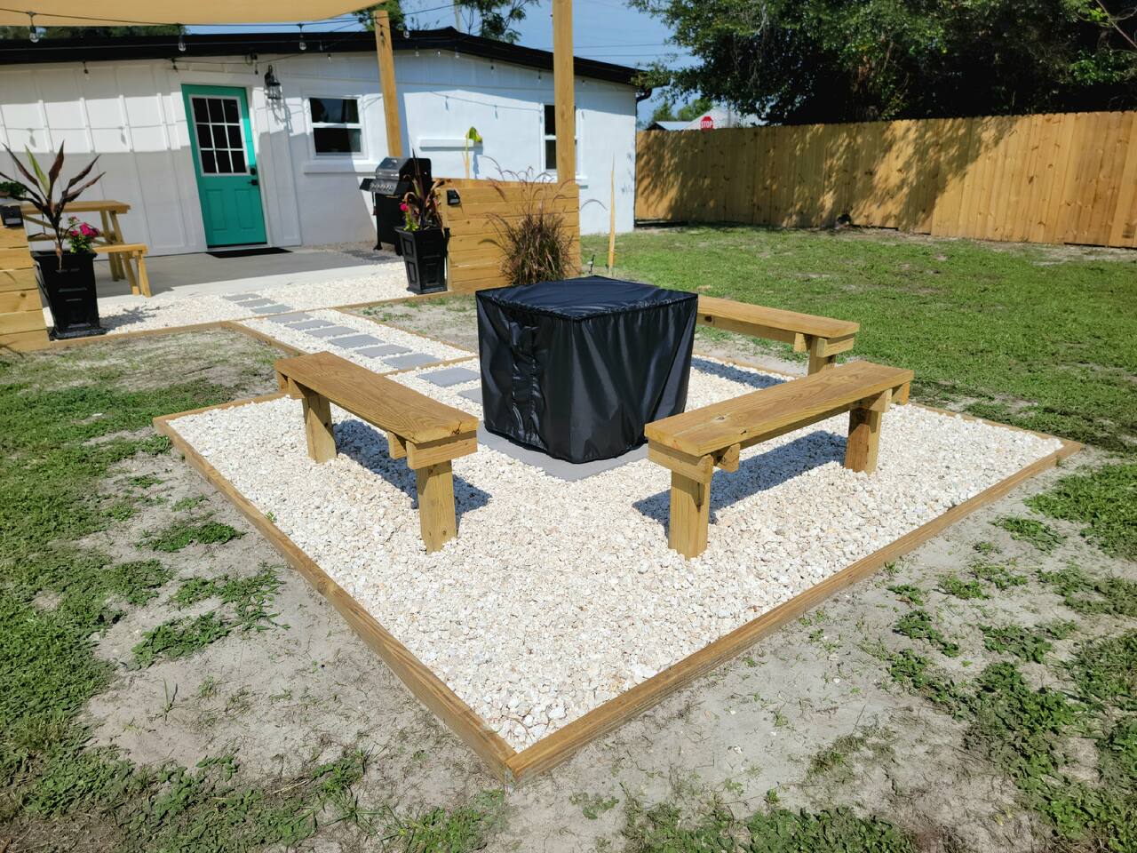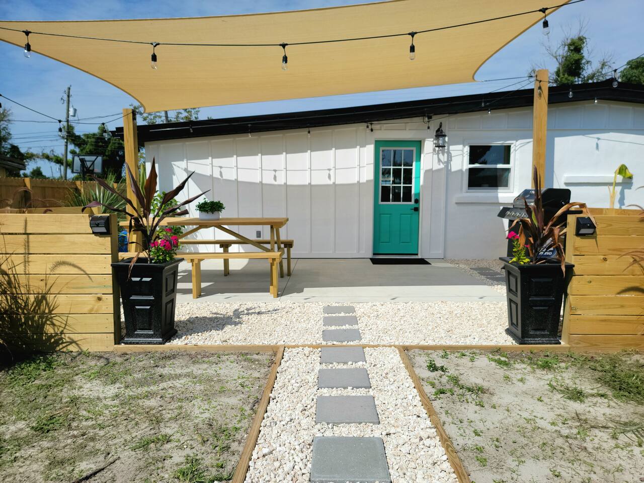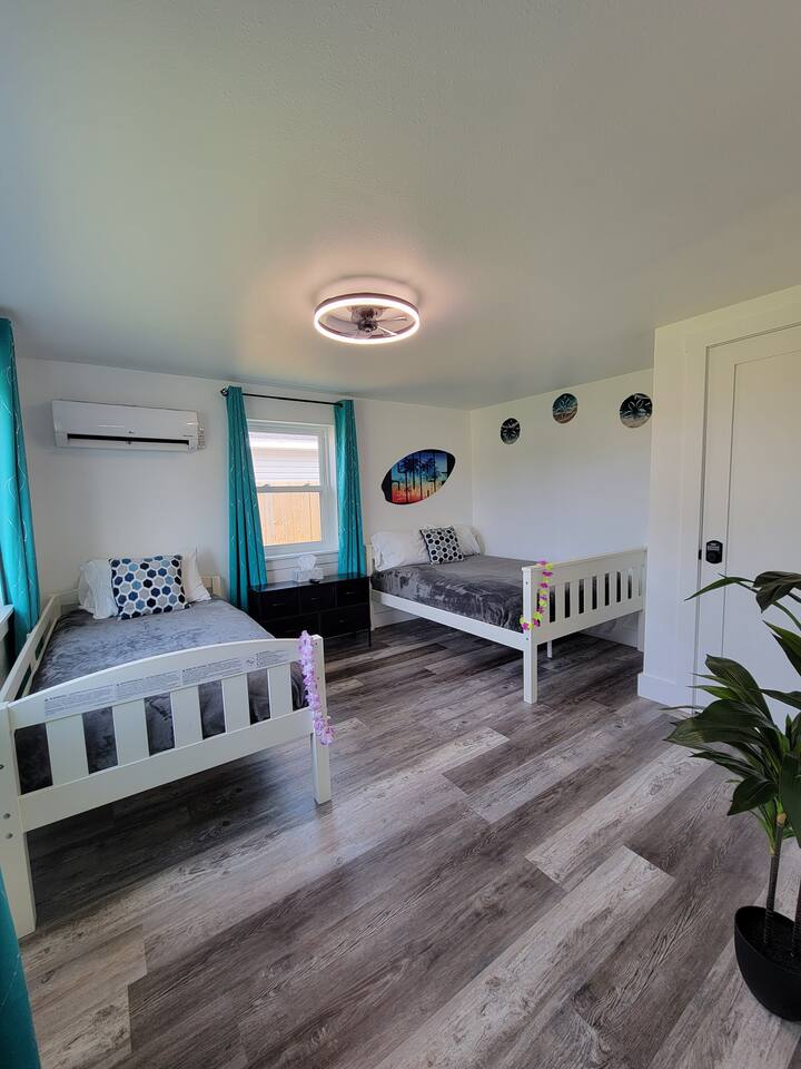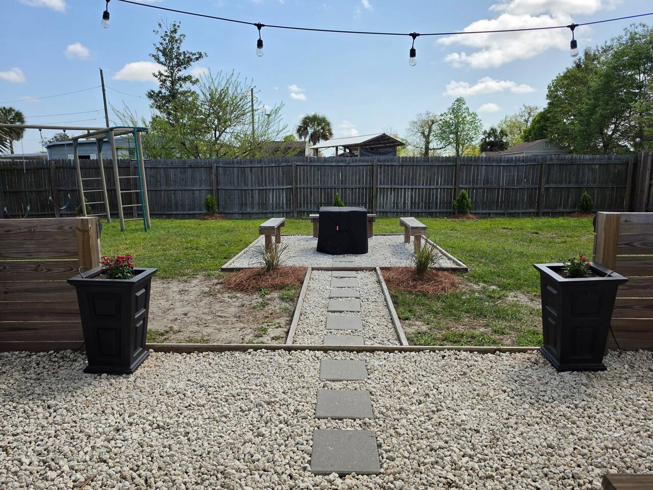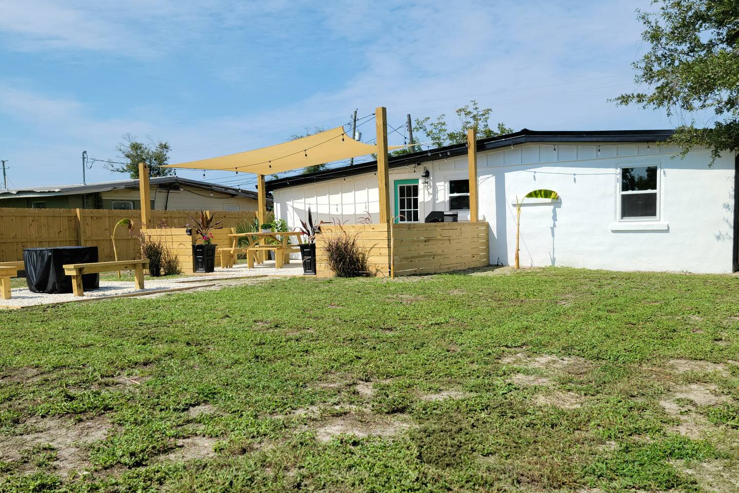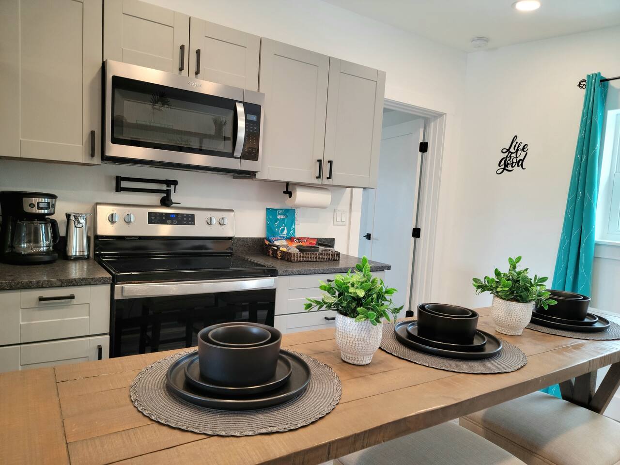 🐢 Turtle Cove Beach Retreat – ⭐ Modern Coastal Cottage in Panama City! 🏡 As You Arrive • Eye-catching modern beach cottage with black, grey, and teal accents • Hand-crafted sea turtle shutters add a local, artistic flair • Lush landscaping with flowers and shrubs creates a welcoming vibe • Ample driveway parking for you and your guests 🛋️ Living Room Open-concept layout flowing into the kitchen • 65" Smart TV and cozy gray sectional with queen memory foam pull-out bed • Large window for natural light and front yard views • Dedicated temperature control for comfort • Decorated with indoor plants and beachy accents 🍽️ Kitchen • Modern with black brushed granite countertops and stainless steel Whirlpool appliances • Unique surfboard light fixture adds coastal character • Chop block floating shelves for storage • Fully stocked for all your cooking needs — from spices to cookware 🛏️ Master Bedroom • Cozy and stylish with a queen memory foam mattress • 50" Smart TV and small work desk • Private temperature control • Decorated with turtle & beach-themed art 🛏️ Guest Bedroom • Two beds, one full and one Twin bed Both have very comfy mattresses • 50" Smart TV with HBO Max included • Private temperature control • Serene turtle and beach decor 🛁 Bathroom • Spacious with a double vanity and modern rain shower & soaking tub • Sleek black fixtures and touch-screen lighted mirror • Recessed lighting and turtle-themed details for a spa-like feel 🧺 Laundry Room & Game Space • Equipped with Samsung front-load washer & dryer • Bonus: Retro arcade machine with 300+ classic games for 1–2 players 🍴 Outdoor Dining Area • Shaded by a sun sail, surrounded by natural greenery and stone • Handmade picnic table under string lights • Propane grill for unforgettable meals 🔥 Outdoor Fireplace • Stone path leads to a cozy firepit with bench seating • Surrounded by privacy fencing for a secluded oasis 🐚 Modern Touches & Local Charm • Thoughtfully designed with modern beach cottage style • Sea turtle theme runs throughout for a fun, local vibe • The perfect escape for relaxation, connection, and memories 📅 Ready to book? Come relax, reset, and enjoy a one-of-a-kind stay at Turtle Cove