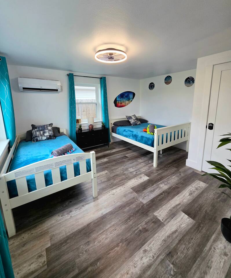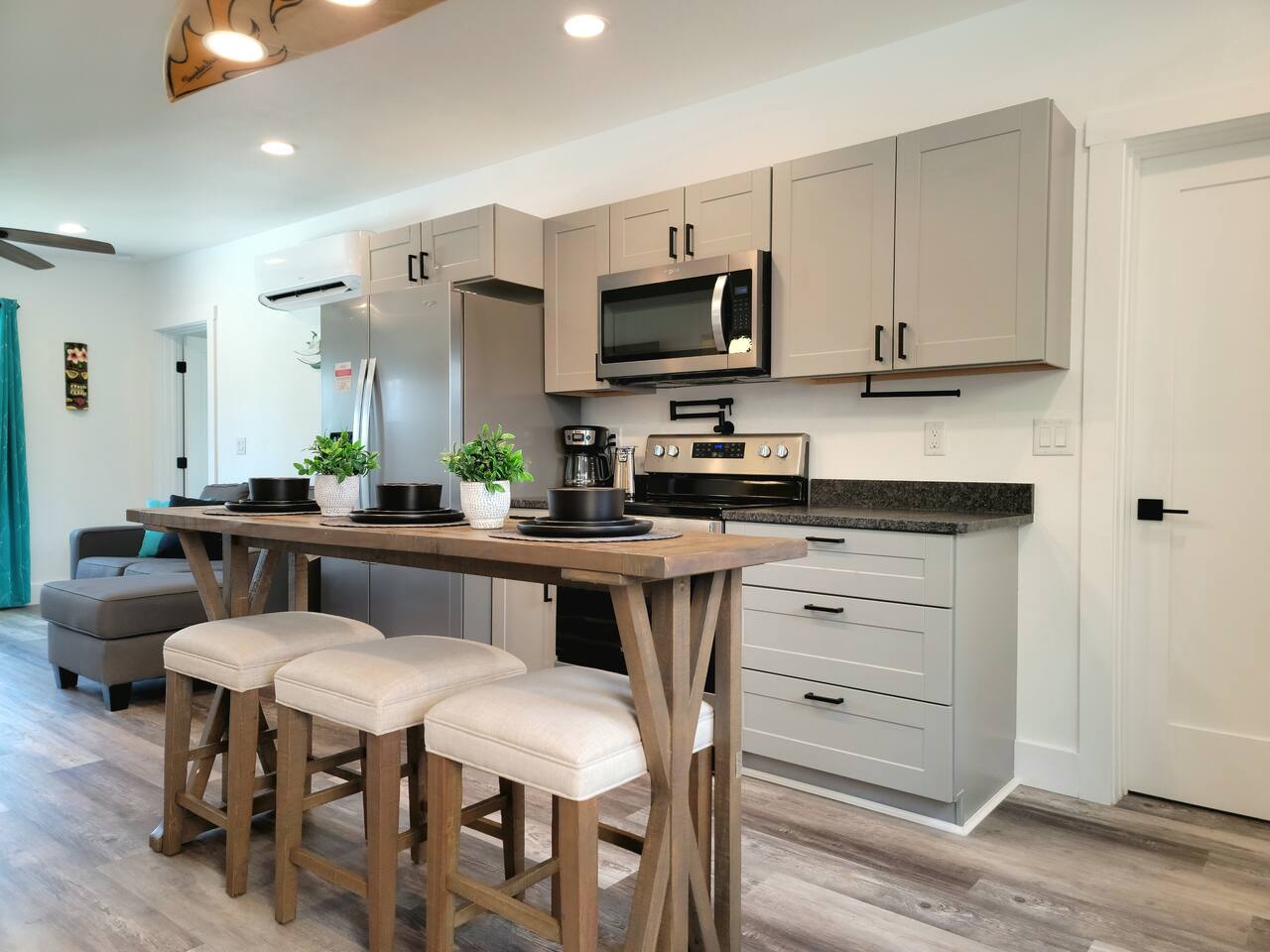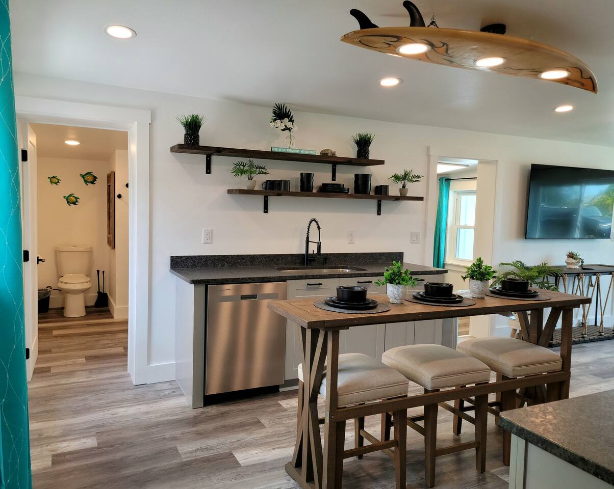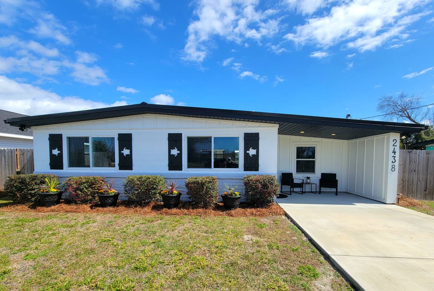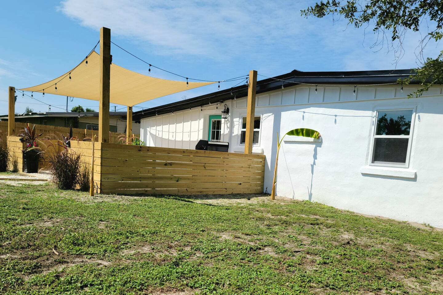 🐢 Turtle Cove Beach Retreat – ⭐ Modern Coastal Cottage in Panama City! 🏡 As You Arrive • Eye-catching modern beach cottage with black, grey, and teal accents • Hand-crafted sea turtle shutters add a local, artistic flair • Lush landscaping with flowers and shrubs creates a welcoming vibe • Ample driveway parking for you and your guests 🛋️ Living Room Open-concept layout flowing into the kitchen • 65" Smart TV and cozy gray sectional with queen memory foam pull-out bed • Large window for natural light and front yard views • Dedicated temperature control for comfort • Decorated with indoor plants and beachy accents 🍽️ Kitchen • Modern with black brushed granite countertops and stainless steel Whirlpool appliances • Unique surfboard light fixture adds coastal character • Chop block floating shelves for storage • Fully stocked for all your cooking needs — from spices to cookware 🛏️ Master Bedroom • Cozy and stylish with a queen memory foam mattress • 50" Smart TV and small work desk • Private temperature control • Decorated with turtle & beach-themed art 🛏️ Guest Bedroom • Two beds, one full and one Twin bed Both have very comfy mattresses • 50" Smart TV with HBO Max included • Private temperature control • Serene turtle and beach decor 🛁 Bathroom • Spacious with a double vanity and modern rain shower & soaking tub • Sleek black fixtures and touch-screen lighted mirror • Recessed lighting and turtle-themed details for a spa-like feel 🧺 Laundry Room & Game Space • Equipped with Samsung front-load washer & dryer • Bonus: Retro arcade machine with 300+ classic games for 1–2 players 🍴 Outdoor Dining Area • Shaded by a sun sail, surrounded by natural greenery and stone • Handmade picnic table under string lights • Propane grill for unforgettable meals 🔥 Outdoor Fireplace • Stone path leads to a cozy firepit with bench seating • Surrounded by privacy fencing for a secluded oasis 🐚 Modern Touches & Local Charm • Thoughtfully designed with modern beach cottage style • Sea turtle theme runs throughout for a fun, local vibe • The perfect escape for relaxation, connection, and memories 📅 Ready to book? Come relax, reset, and enjoy a one-of-a-kind stay at Turtle Cove