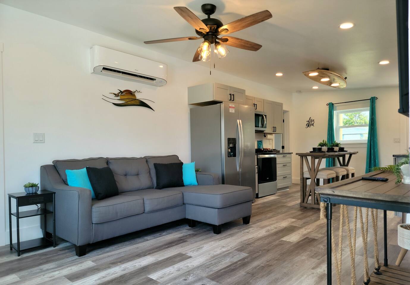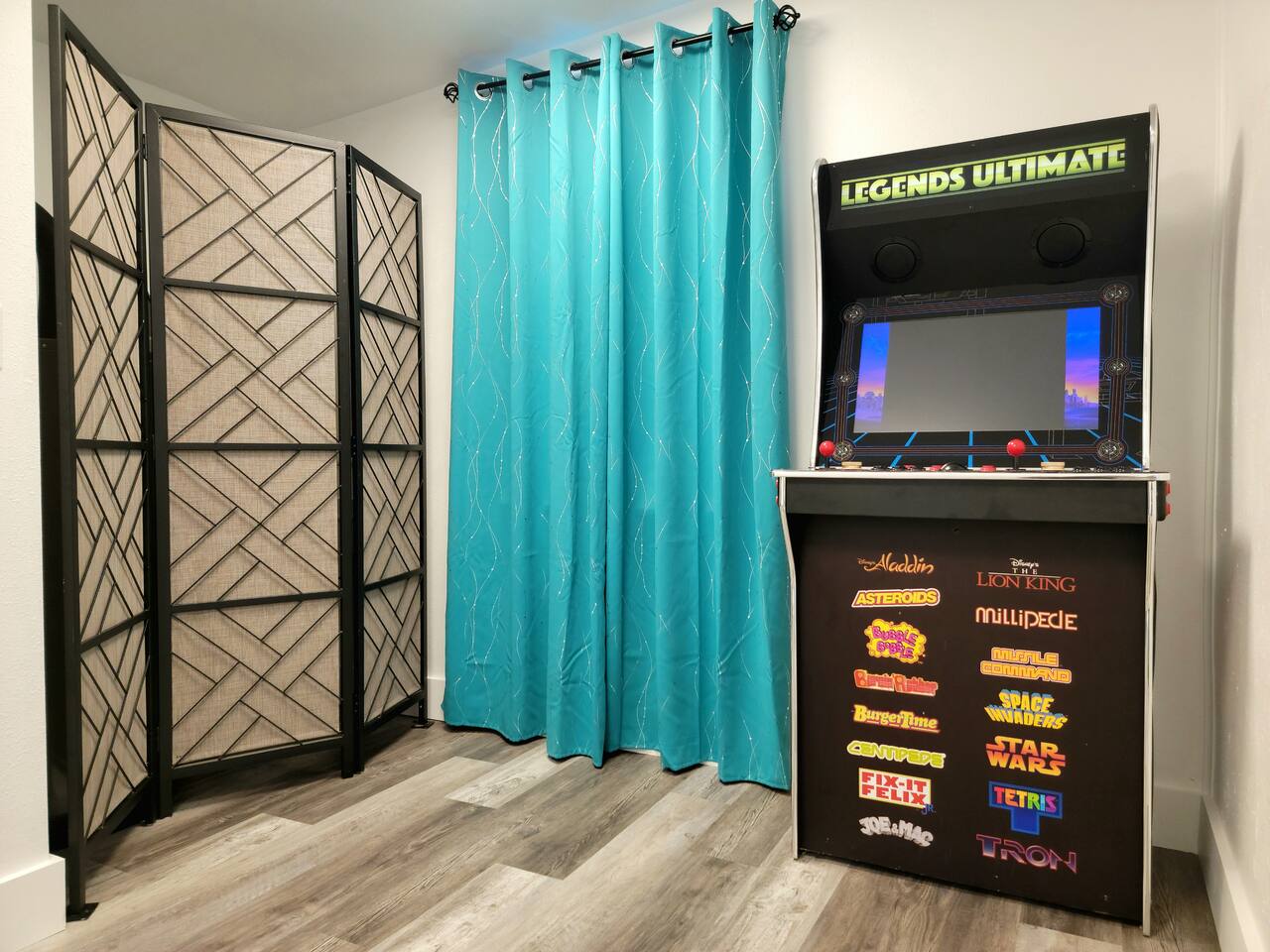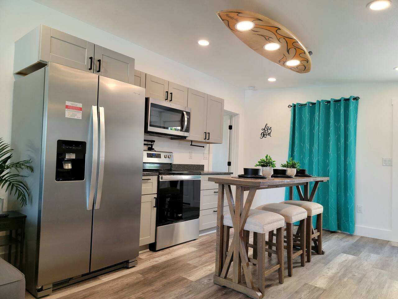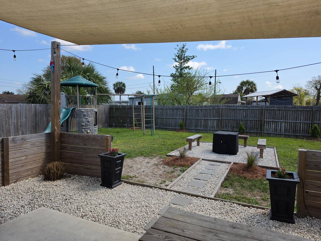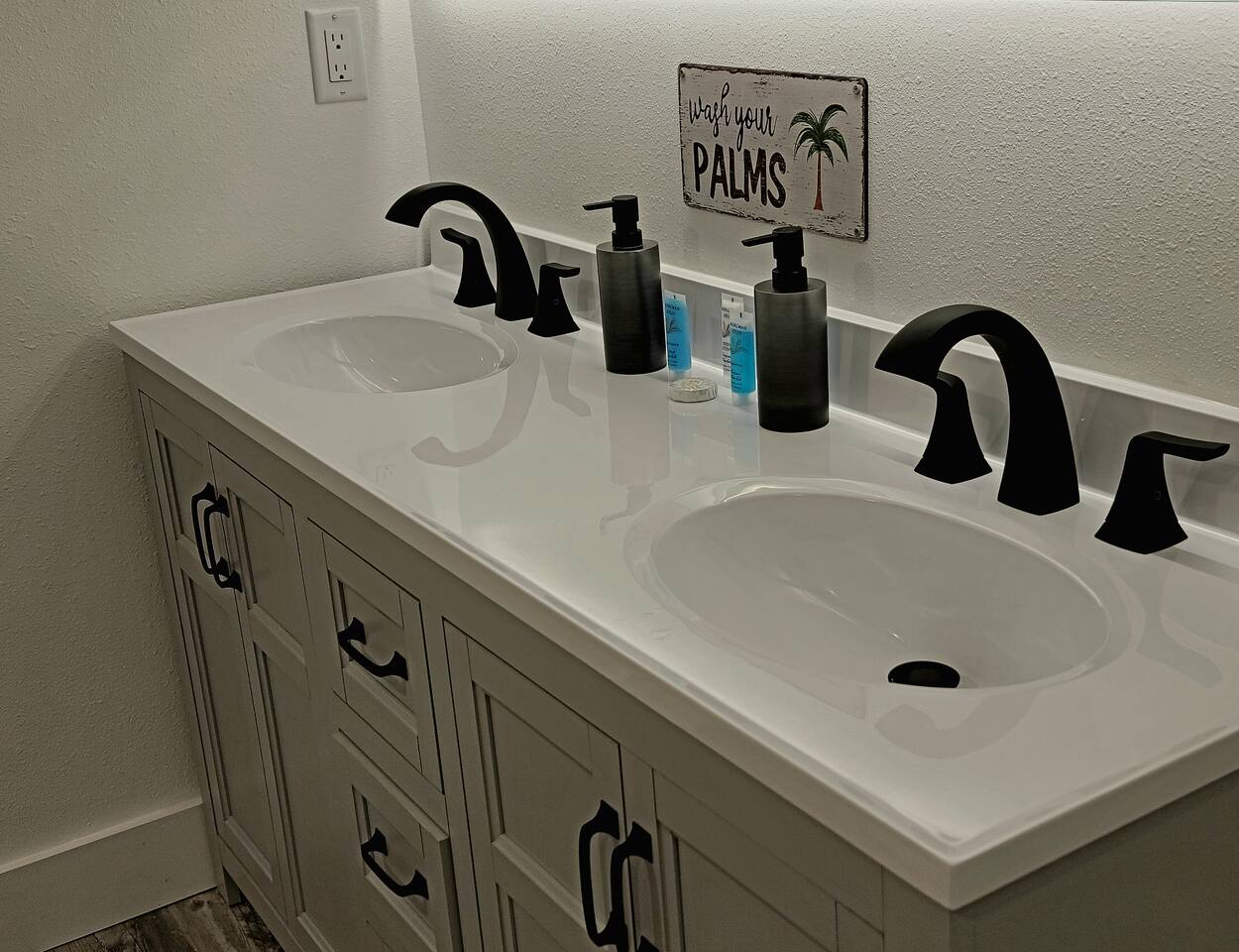 🐢 Turtle Cove Beach Retreat – ⭐ Modern Coastal Cottage in Panama City! 🏡 As You Arrive • Eye-catching modern beach cottage with black, grey, and teal accents • Hand-crafted sea turtle shutters add a local, artistic flair • Lush landscaping with flowers and shrubs creates a welcoming vibe • Ample driveway parking for you and your guests 🛋️ Living Room Open-concept layout flowing into the kitchen • 65" Smart TV and cozy gray sectional with queen memory foam pull-out bed • Large window for natural light and front yard views • Dedicated temperature control for comfort • Decorated with indoor plants and beachy accents 🍽️ Kitchen • Modern with black brushed granite countertops and stainless steel Whirlpool appliances • Unique surfboard light fixture adds coastal character • Chop block floating shelves for storage • Fully stocked for all your cooking needs — from spices to cookware 🛏️ Master Bedroom • Cozy and stylish with a queen memory foam mattress • 50" Smart TV and small work desk • Private temperature control • Decorated with turtle & beach-themed art 🛏️ Guest Bedroom • Two beds, one full and one Twin bed Both have very comfy mattresses • 50" Smart TV with HBO Max included • Private temperature control • Serene turtle and beach decor 🛁 Bathroom • Spacious with a double vanity and modern rain shower & soaking tub • Sleek black fixtures and touch-screen lighted mirror • Recessed lighting and turtle-themed details for a spa-like feel 🧺 Laundry Room & Game Space • Equipped with Samsung front-load washer & dryer • Bonus: Retro arcade machine with 300+ classic games for 1–2 players 🍴 Outdoor Dining Area • Shaded by a sun sail, surrounded by natural greenery and stone • Handmade picnic table under string lights • Propane grill for unforgettable meals 🔥 Outdoor Fireplace • Stone path leads to a cozy firepit with bench seating • Surrounded by privacy fencing for a secluded oasis 🐚 Modern Touches & Local Charm • Thoughtfully designed with modern beach cottage style • Sea turtle theme runs throughout for a fun, local vibe • The perfect escape for relaxation, connection, and memories 📅 Ready to book? Come relax, reset, and enjoy a one-of-a-kind stay at Turtle Cove