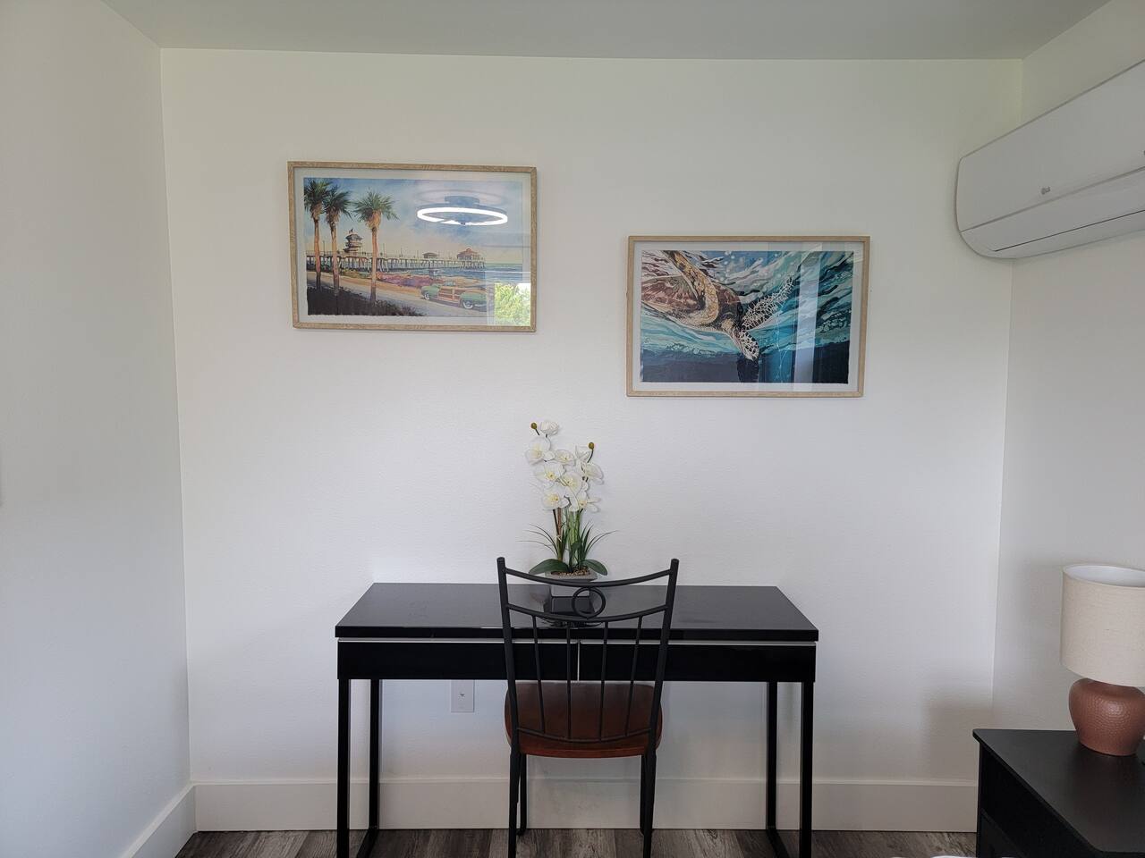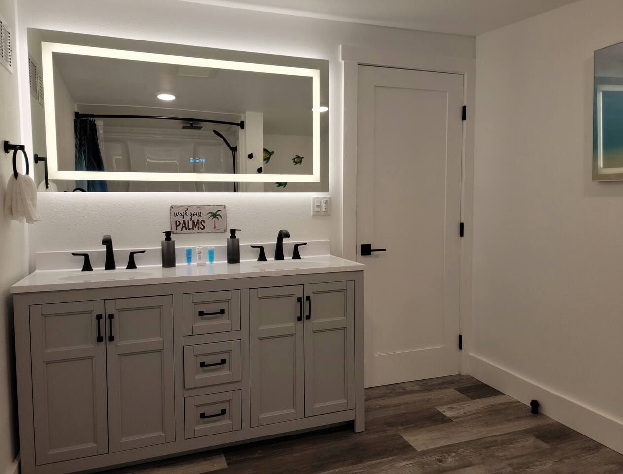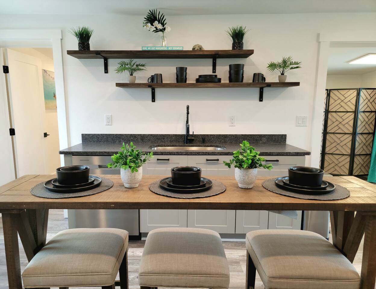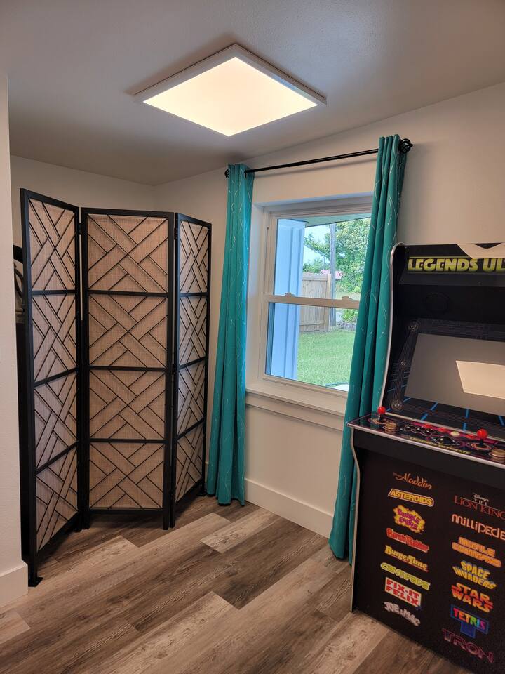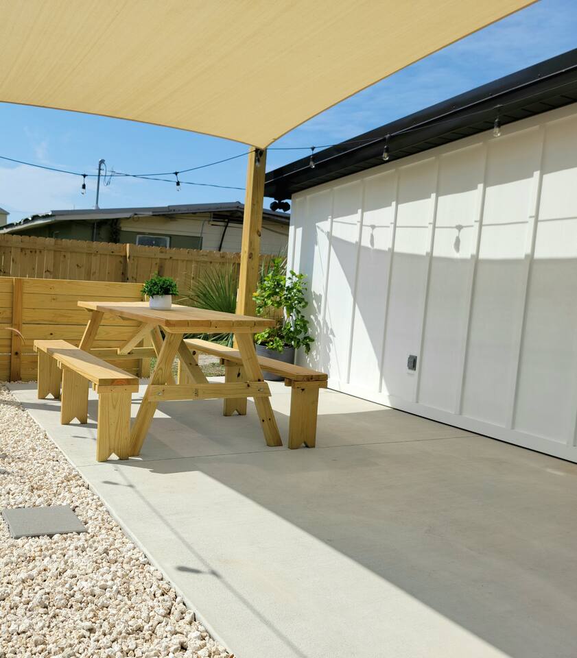 🐢 Turtle Cove Beach Retreat – ⭐ Modern Coastal Cottage in Panama City! 🏡 As You Arrive • Eye-catching modern beach cottage with black, grey, and teal accents • Hand-crafted sea turtle shutters add a local, artistic flair • Lush landscaping with flowers and shrubs creates a welcoming vibe • Ample driveway parking for you and your guests 🛋️ Living Room Open-concept layout flowing into the kitchen • 65" Smart TV and cozy gray sectional with queen memory foam pull-out bed • Large window for natural light and front yard views • Dedicated temperature control for comfort • Decorated with indoor plants and beachy accents 🍽️ Kitchen • Modern with black brushed granite countertops and stainless steel Whirlpool appliances • Unique surfboard light fixture adds coastal character • Chop block floating shelves for storage • Fully stocked for all your cooking needs — from spices to cookware 🛏️ Master Bedroom • Cozy and stylish with a queen memory foam mattress • 50" Smart TV and small work desk • Private temperature control • Decorated with turtle & beach-themed art 🛏️ Guest Bedroom • Two beds, one full and one Twin bed Both have very comfy mattresses • 50" Smart TV with HBO Max included • Private temperature control • Serene turtle and beach decor 🛁 Bathroom • Spacious with a double vanity and modern rain shower & soaking tub • Sleek black fixtures and touch-screen lighted mirror • Recessed lighting and turtle-themed details for a spa-like feel 🧺 Laundry Room & Game Space • Equipped with Samsung front-load washer & dryer • Bonus: Retro arcade machine with 300+ classic games for 1–2 players 🍴 Outdoor Dining Area • Shaded by a sun sail, surrounded by natural greenery and stone • Handmade picnic table under string lights • Propane grill for unforgettable meals 🔥 Outdoor Fireplace • Stone path leads to a cozy firepit with bench seating • Surrounded by privacy fencing for a secluded oasis 🐚 Modern Touches & Local Charm • Thoughtfully designed with modern beach cottage style • Sea turtle theme runs throughout for a fun, local vibe • The perfect escape for relaxation, connection, and memories 📅 Ready to book? Come relax, reset, and enjoy a one-of-a-kind stay at Turtle Cove