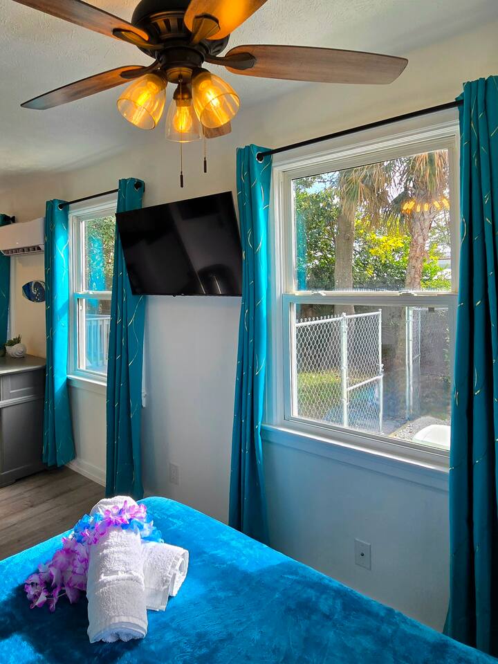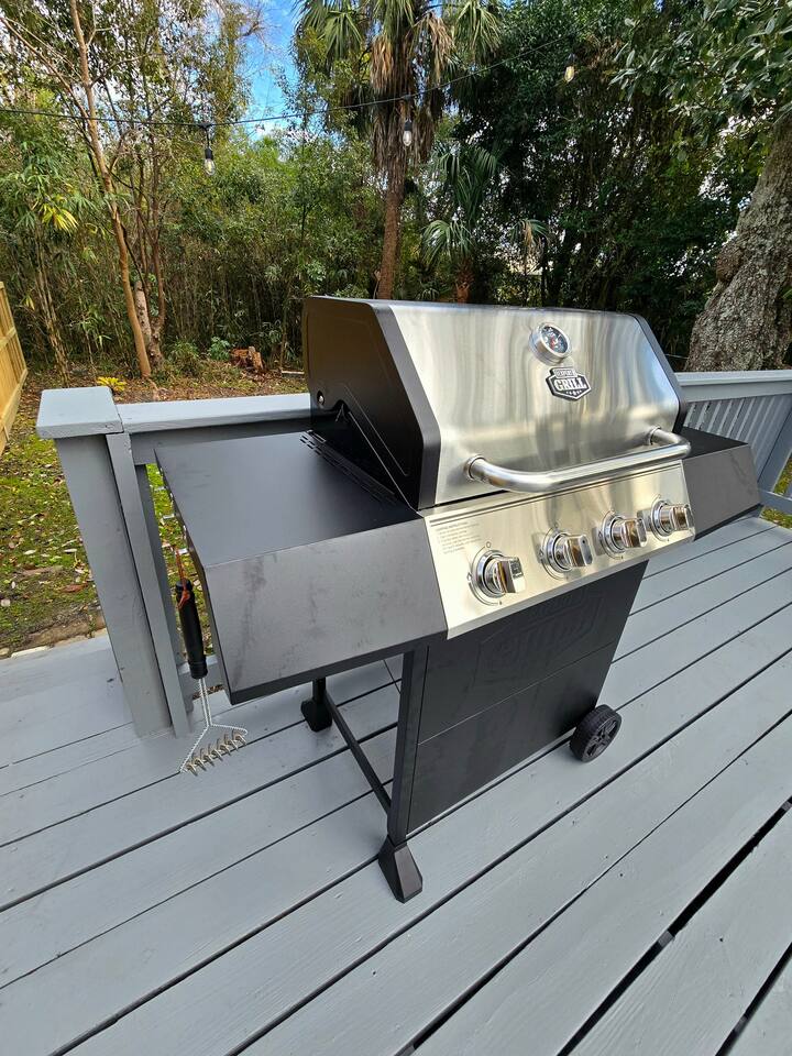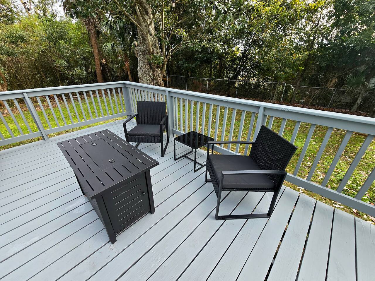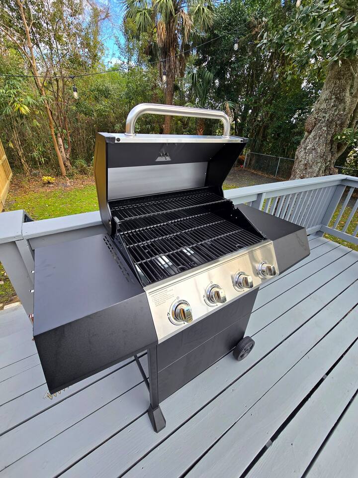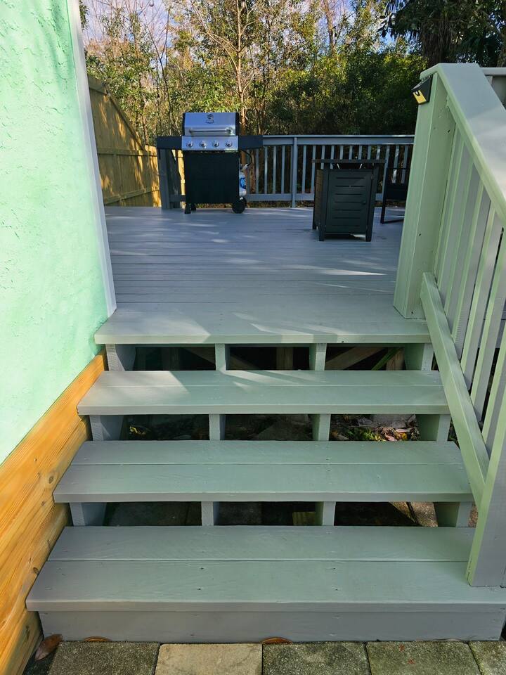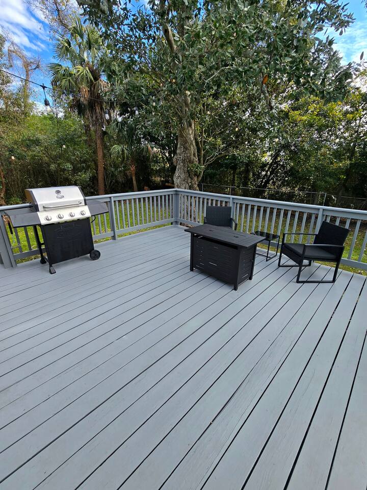 Studio Bedroom • Queen-size bed with soft, high-quality linens 🛏️ • Smart TV with HBO Max for entertainment 📺 • Dresser + nightstand for storage 🗄️ • Blackout curtains for a peaceful sleep 💤 Gourmet Kitchen & Modern Touches • Stainless appliances: fridge, stove, microwave, dishwasher 🍳 • Brushed black granite countertops for a sleek style ✨ • Fully stocked: cookware, utensils, dinnerware 🍽️ Modern Bathroom • Stand-up corner shower with black rain showerhead 🚿 • Stackable washer & dryer for laundry convenience 🧺 Private & Peaceful • Dedicated entrance & private parking 🚗 • Fenced backyard for relaxing outdoors 🌳 • Perfect location — close to all Panama City attractions 🎭 Outdoor Space • Spacious back porch for lounging 🌞 • Firepit for cozy evenings 🔥 • Propane grill for outdoor cooking 🍖 • Lush greenery for natural privacy 🌿