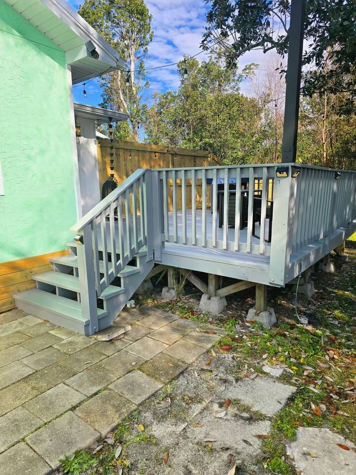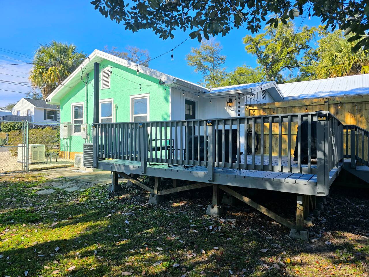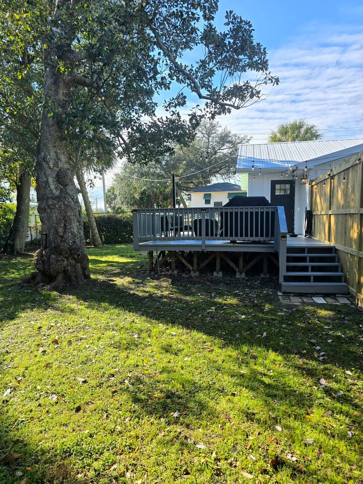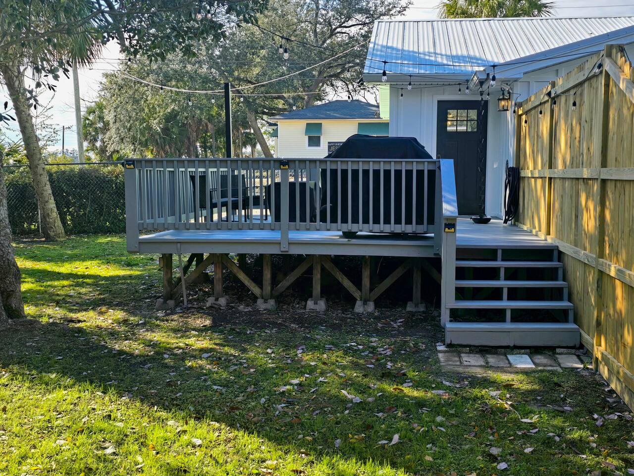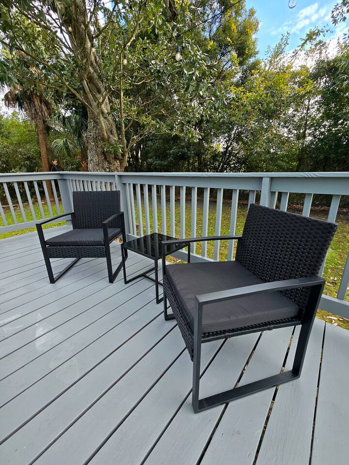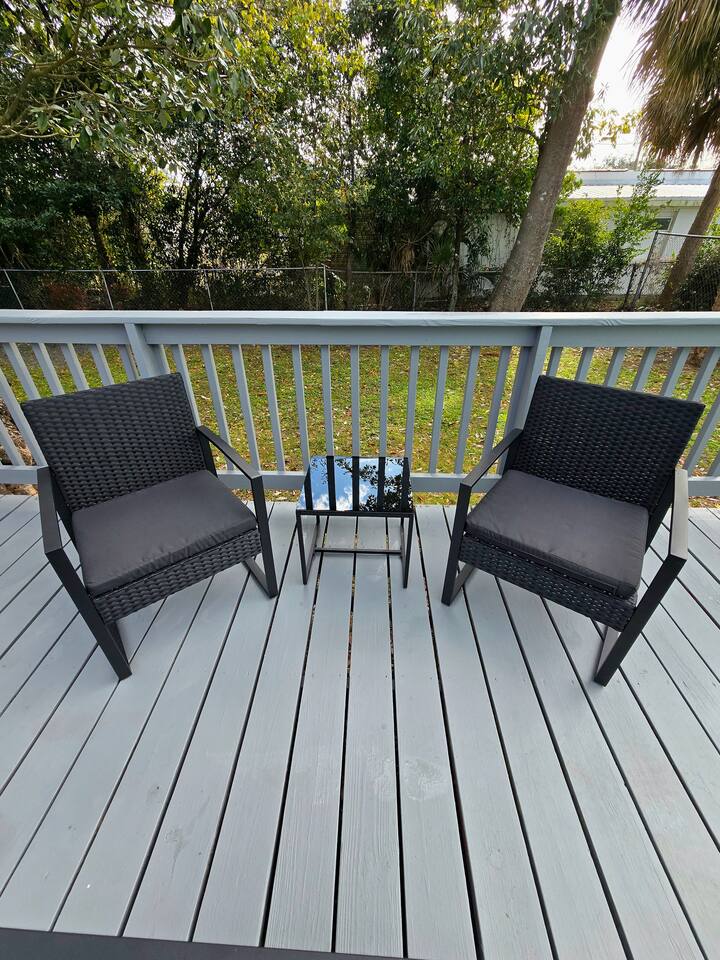 Studio Bedroom • Queen-size bed with soft, high-quality linens 🛏️ • Smart TV with HBO Max for entertainment 📺 • Dresser + nightstand for storage 🗄️ • Blackout curtains for a peaceful sleep 💤 Gourmet Kitchen & Modern Touches • Stainless appliances: fridge, stove, microwave, dishwasher 🍳 • Brushed black granite countertops for a sleek style ✨ • Fully stocked: cookware, utensils, dinnerware 🍽️ Modern Bathroom • Stand-up corner shower with black rain showerhead 🚿 • Stackable washer & dryer for laundry convenience 🧺 Private & Peaceful • Dedicated entrance & private parking 🚗 • Fenced backyard for relaxing outdoors 🌳 • Perfect location — close to all Panama City attractions 🎭 Outdoor Space • Spacious back porch for lounging 🌞 • Firepit for cozy evenings 🔥 • Propane grill for outdoor cooking 🍖 • Lush greenery for natural privacy 🌿