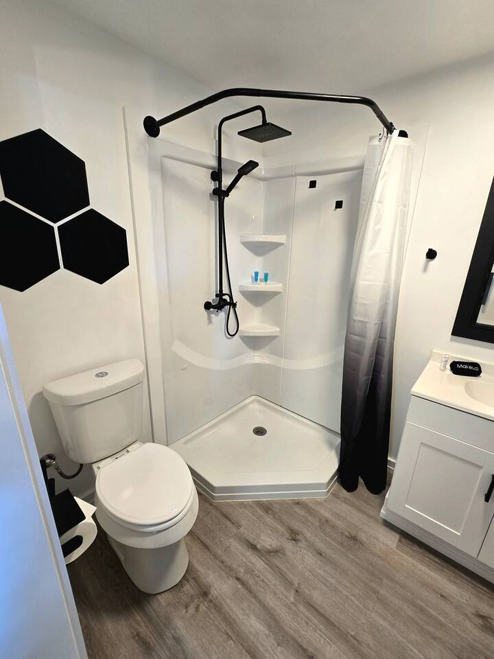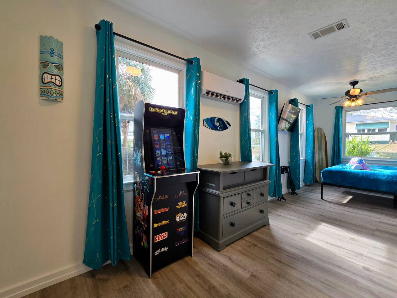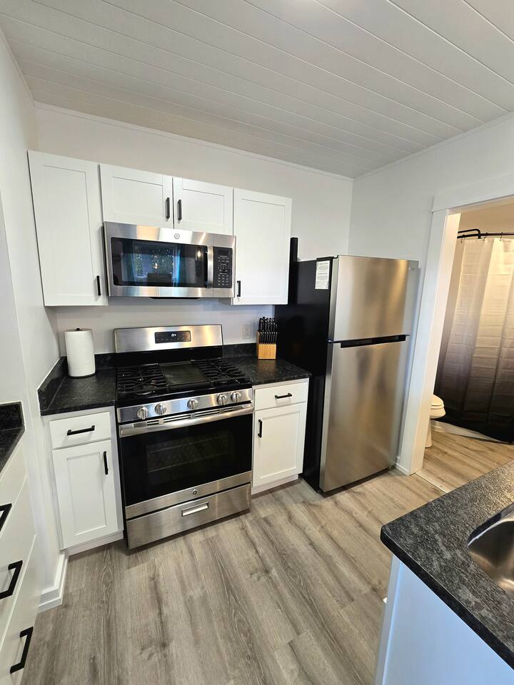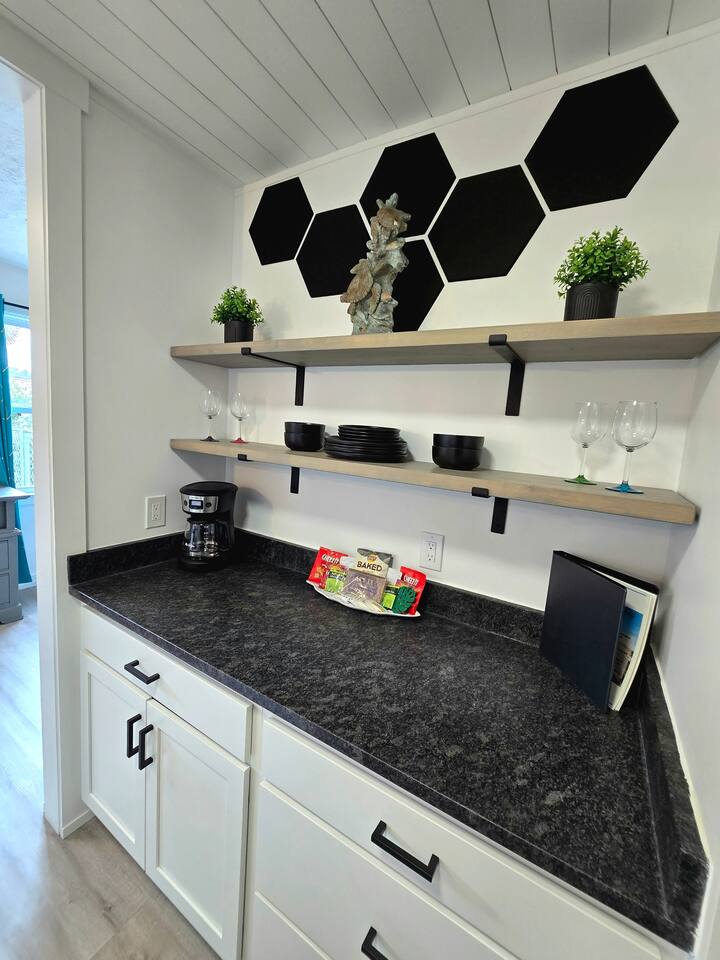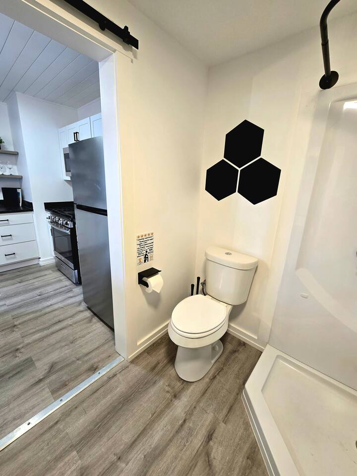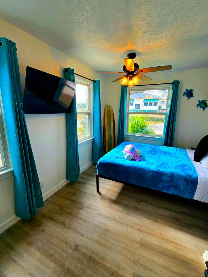 Studio Bedroom • Queen-size bed with soft, high-quality linens 🛏️ • Smart TV with HBO Max for entertainment 📺 • Dresser + nightstand for storage 🗄️ • Blackout curtains for a peaceful sleep 💤 Gourmet Kitchen & Modern Touches • Stainless appliances: fridge, stove, microwave, dishwasher 🍳 • Brushed black granite countertops for a sleek style ✨ • Fully stocked: cookware, utensils, dinnerware 🍽️ Modern Bathroom • Stand-up corner shower with black rain showerhead 🚿 • Stackable washer & dryer for laundry convenience 🧺 Private & Peaceful • Dedicated entrance & private parking 🚗 • Fenced backyard for relaxing outdoors 🌳 • Perfect location — close to all Panama City attractions 🎭 Outdoor Space • Spacious back porch for lounging 🌞 • Firepit for cozy evenings 🔥 • Propane grill for outdoor cooking 🍖 • Lush greenery for natural privacy 🌿